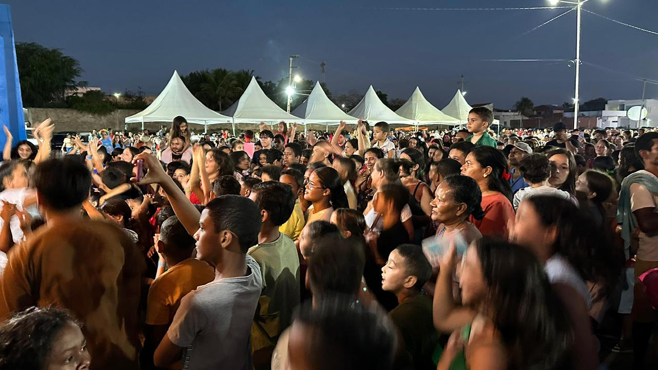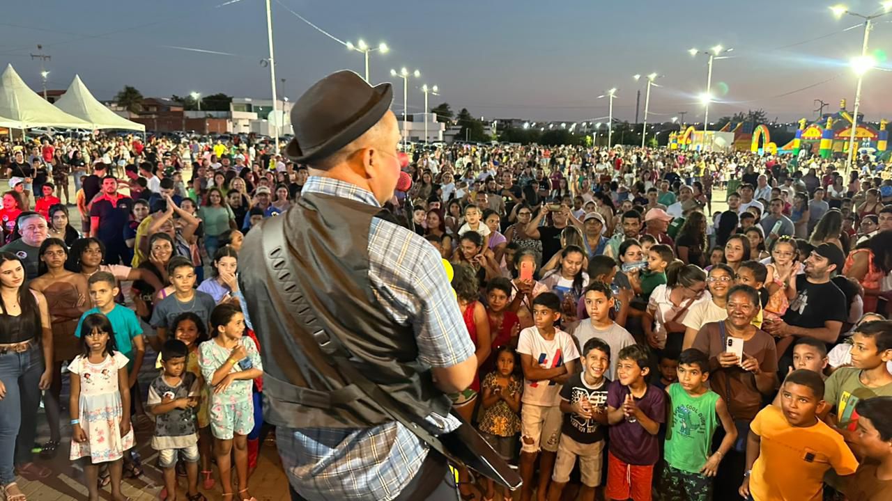 O prefeito Fredson Brito destacou a emoção de ver o sorriso das crianças e a energia do público que lotou o Pátio de Eventos: