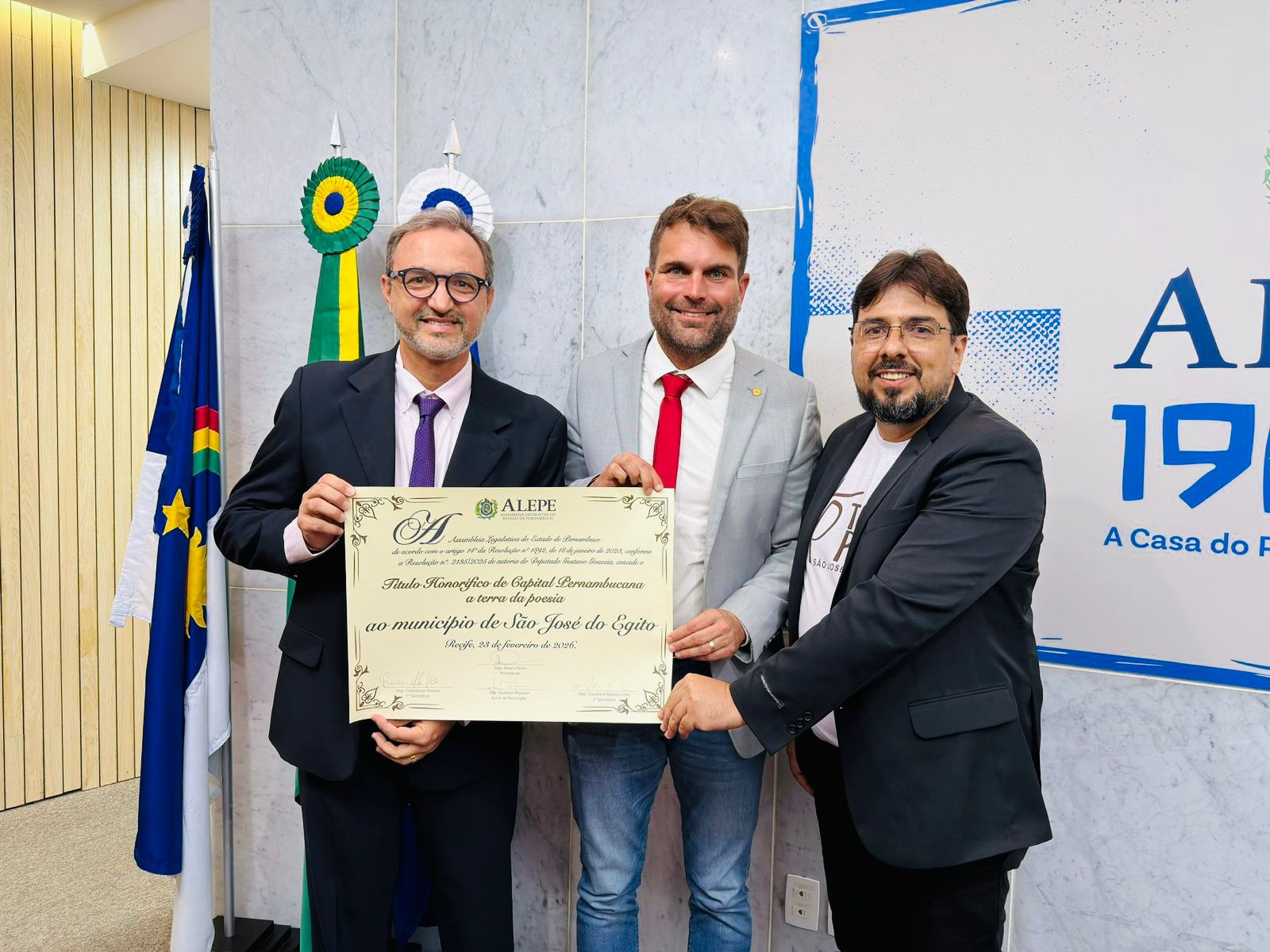 A Prefeitura de São José do Egito celebrou, nesta segunda-feira (23), a entrega oficial do Título Honorífico de Capital Pernambucana da Terra da Poesia ao município. O reconhecimento é resultado do Projeto de Resolução nº 3364/2025, de autoria do deputado estadual Gustavo Gouveia.